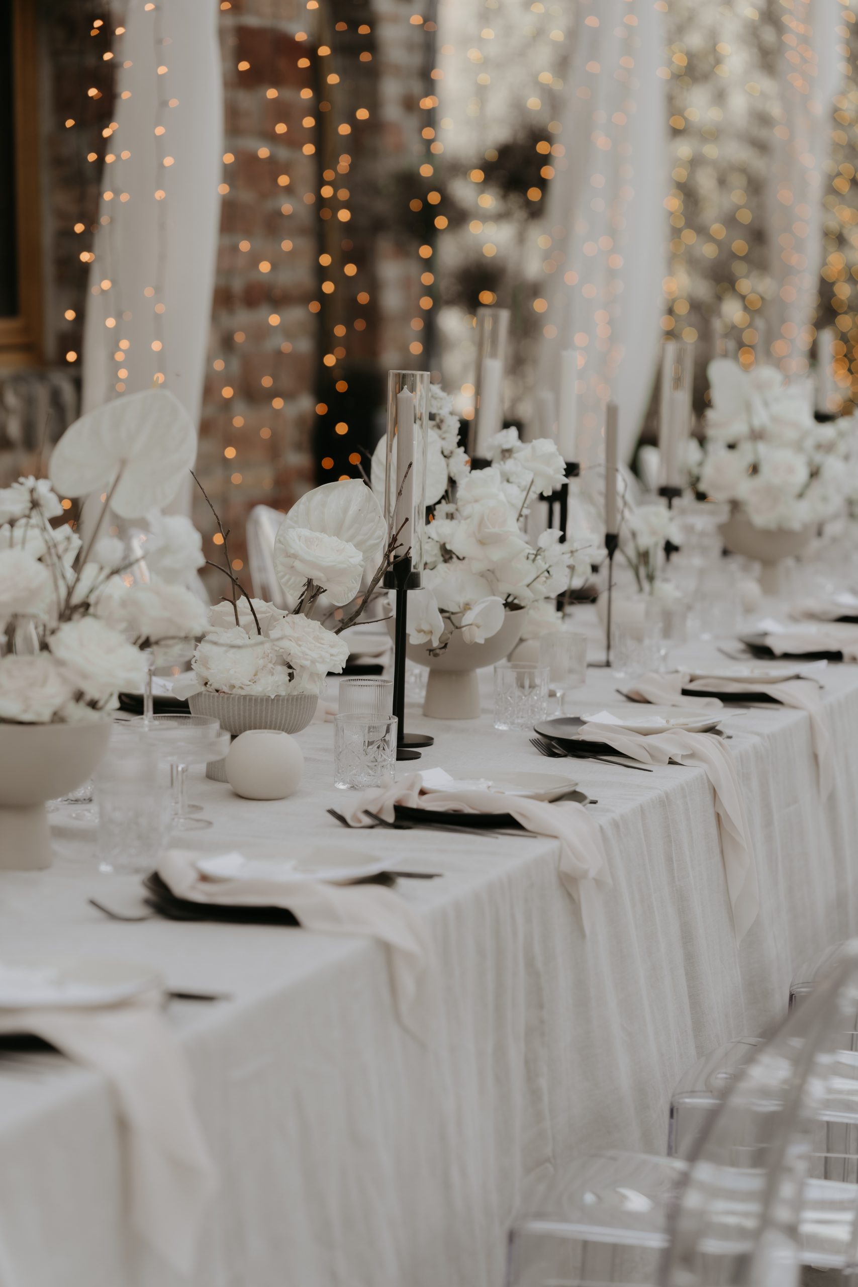 Unserer bodenlangen Tischdecken aus Leinen sind ein absoluter Blickfang für eurer Event und zeichnen sich durch ihre zeitlose Eleganz aus. Ob für Hochzeiten, Gala-Dinner oder exklusive Feiern – unsere hochwertigen Tischdecken verleihen jedem Tisch eine edle Optik und sorgen für ein harmonisches Gesamtbild. Gefertigt aus feinem Leinen, bieten sie eine natürliche, weiche Haptik und fallen besonders schön bis zum Boden. Das strapazierfähige Material sorgt für eine luxuriöse Ausstrahlung.