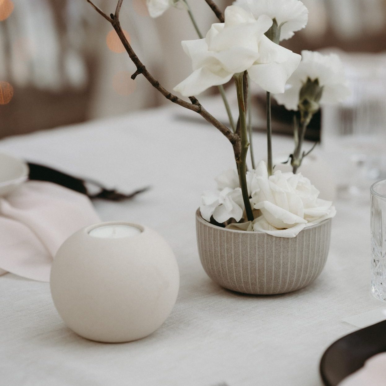 Teelichthalter Kugel beige aus Steingut - Höhe 8,5 cm, ⌀ 9,5 cm