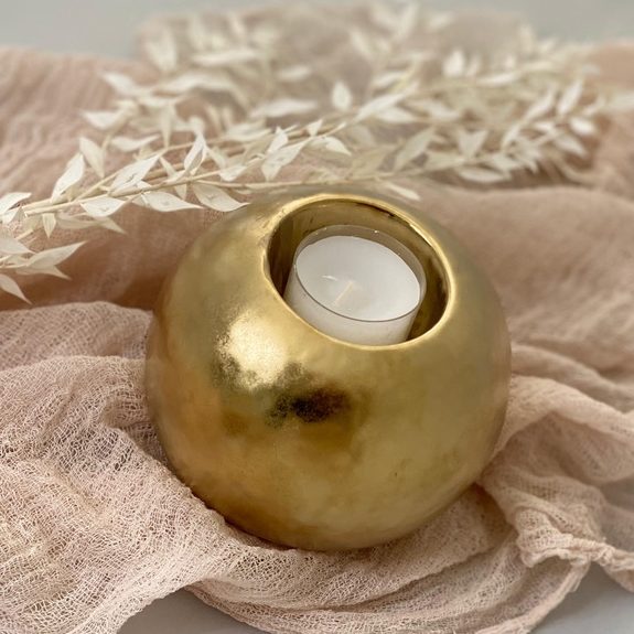 Teelichthalter Kugel gold klein - 9 x 8 cm
