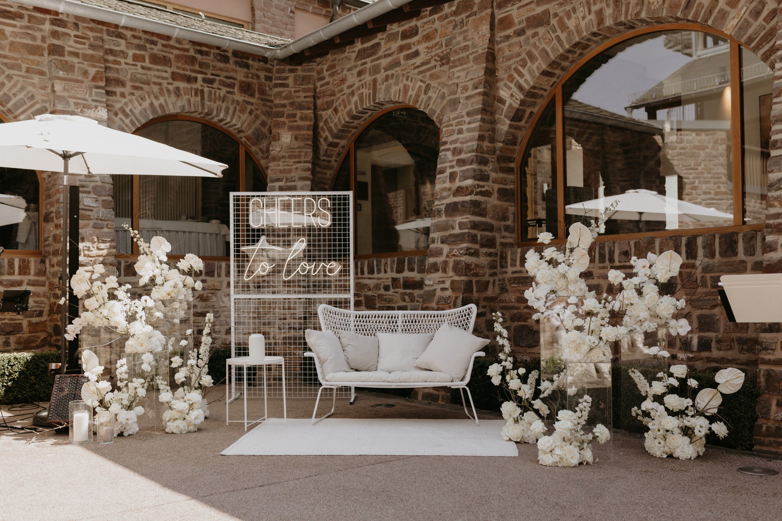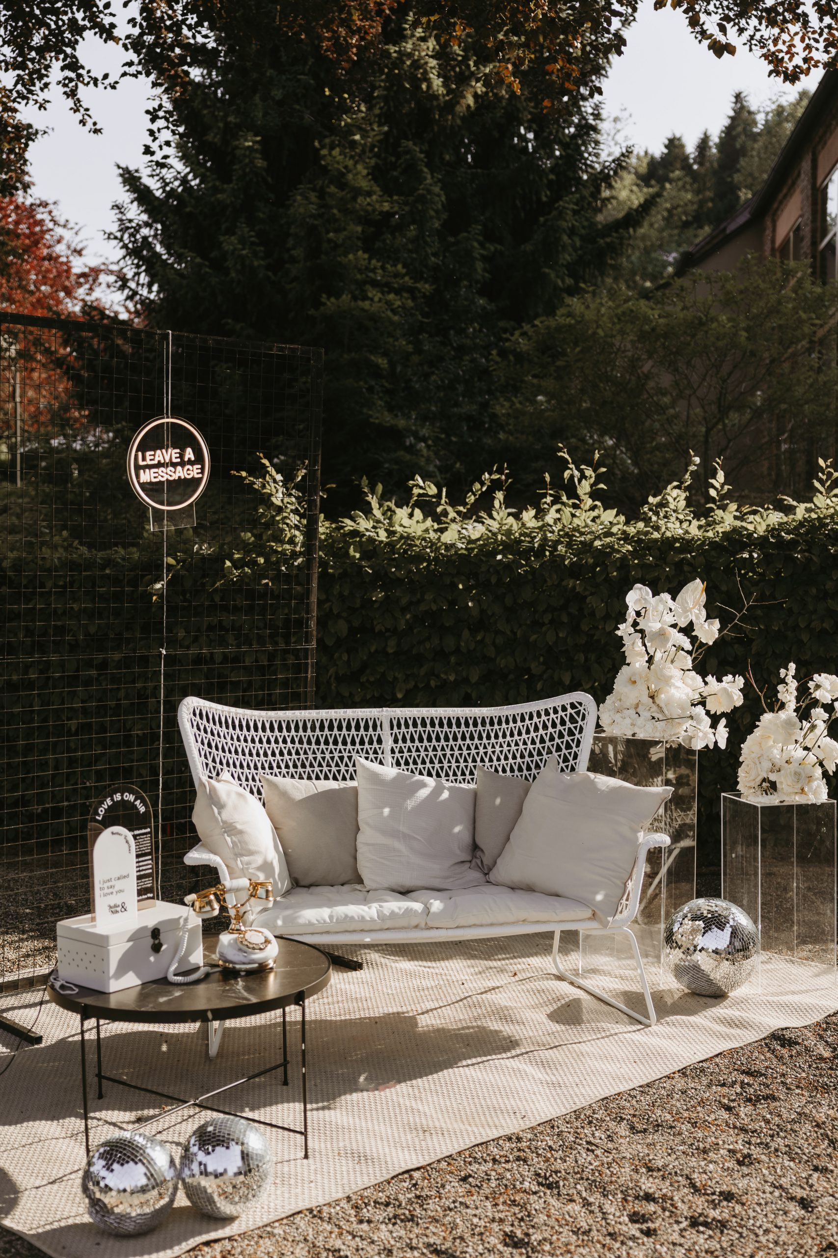 Ob für eine freie Trauung im Grünen, eine standesamtliche Zeremonie oder eine glamouröse Indoor- Feier – das weiße Trausofa fügt sich harmonisch in jedes Dekorationskonzept ein.